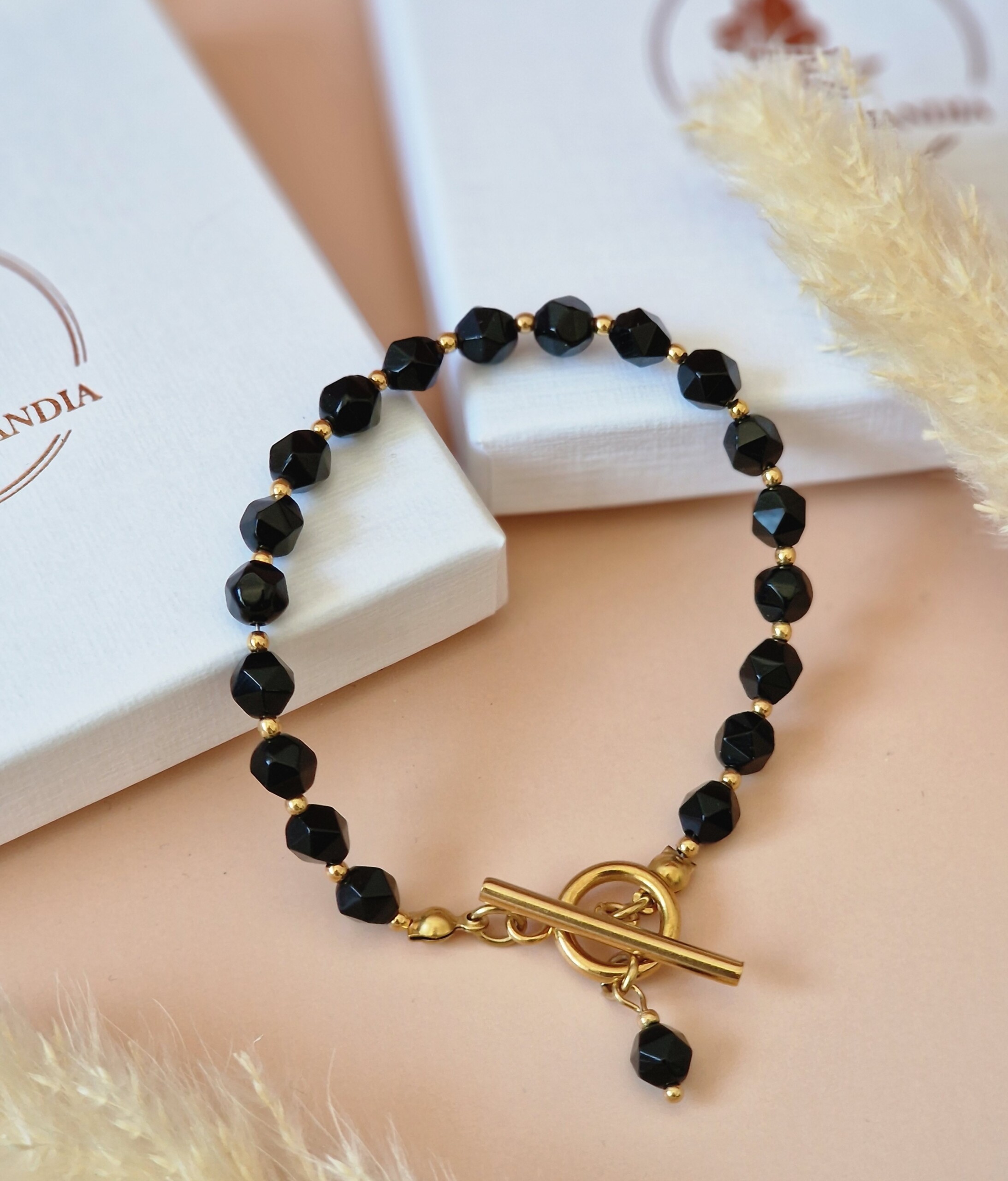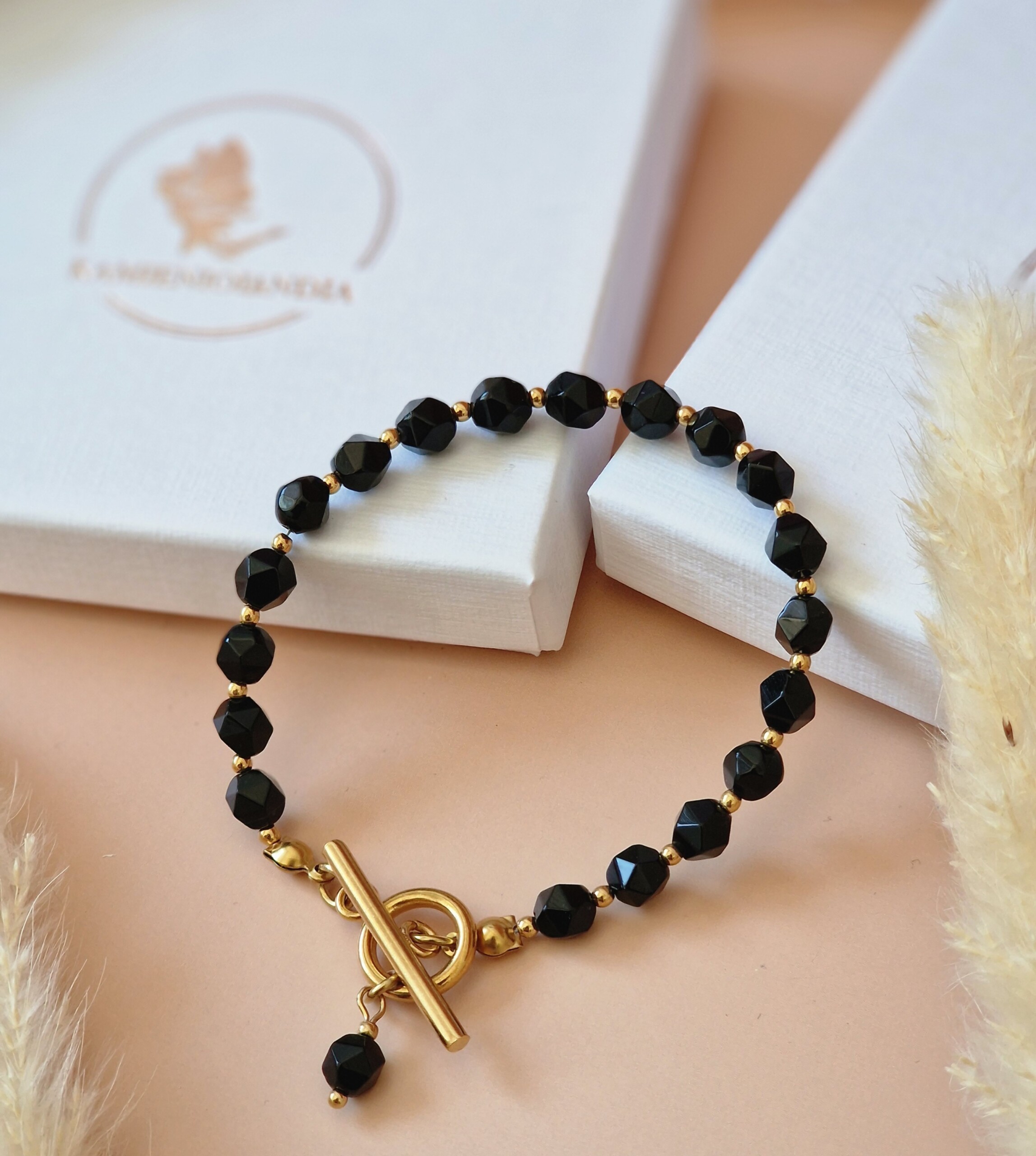 Kamienie użyte do wykonania bransoletki : AGAT ok 6mm, HEMATYT ok 2mm.