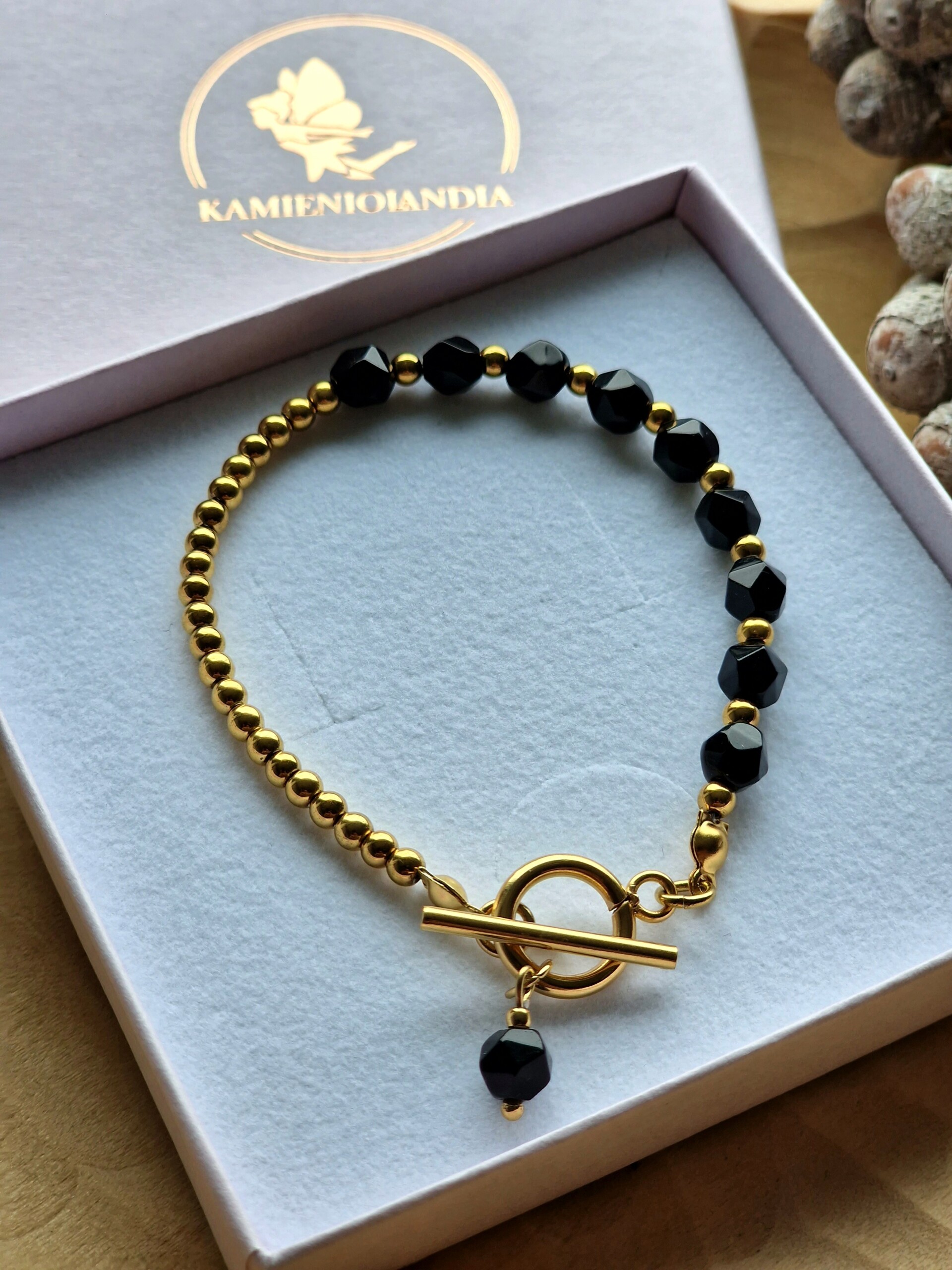 Kamienie użyte do wykonania bransoletki : AGAT ok 6mm, HEMATYT ok 3mm.