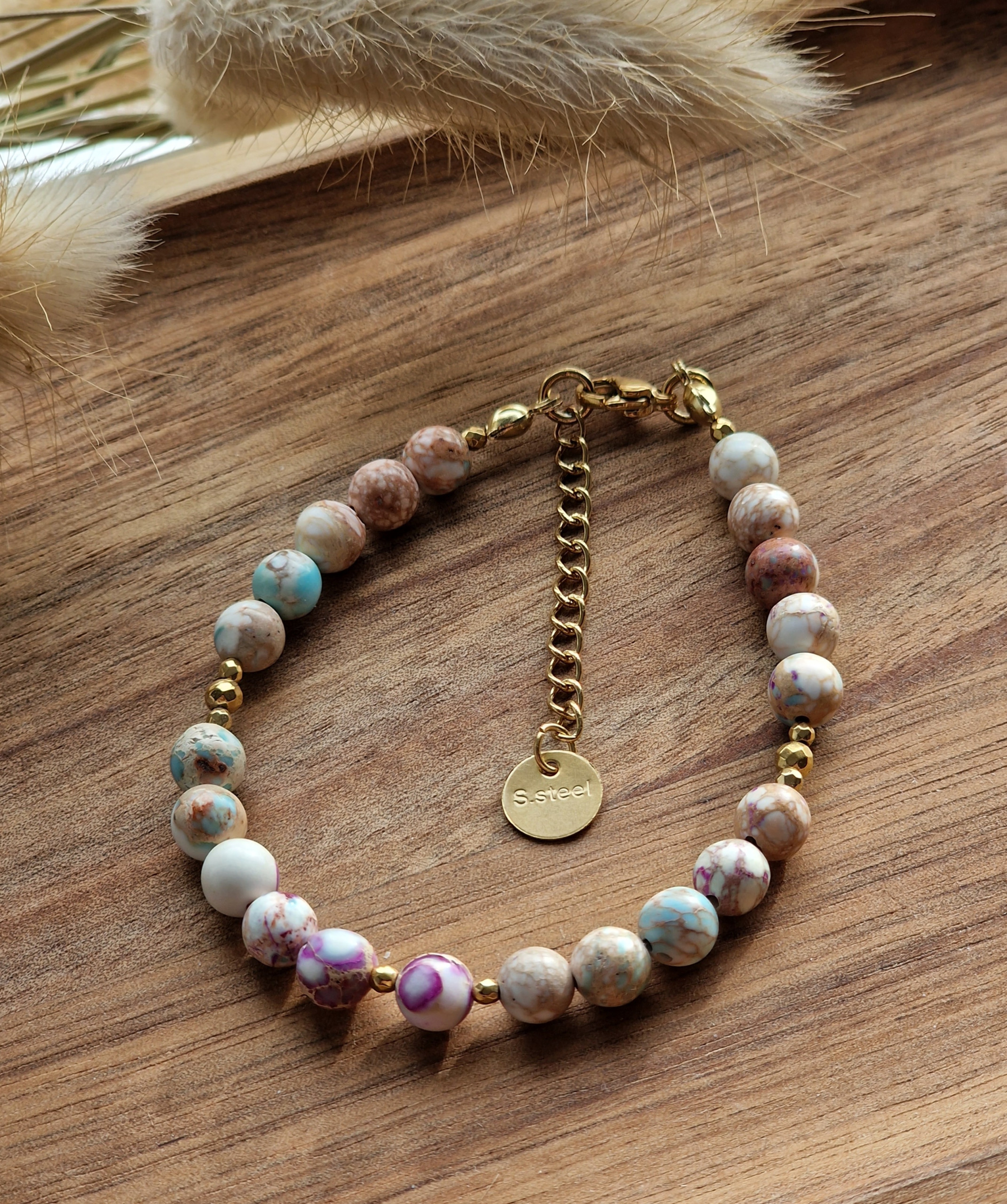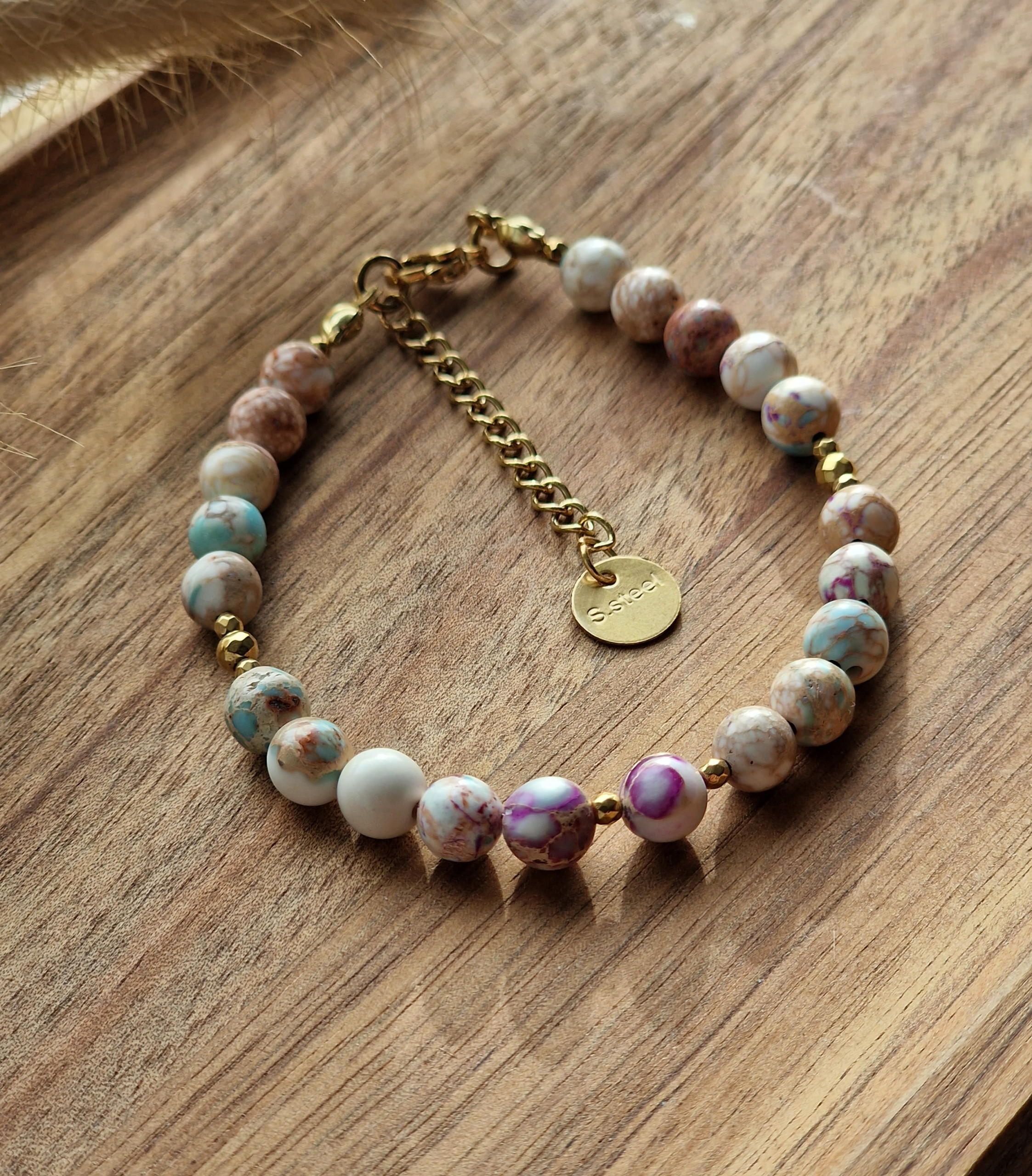 Bransoletka Jaspis cesarski kremowy, Hematyt