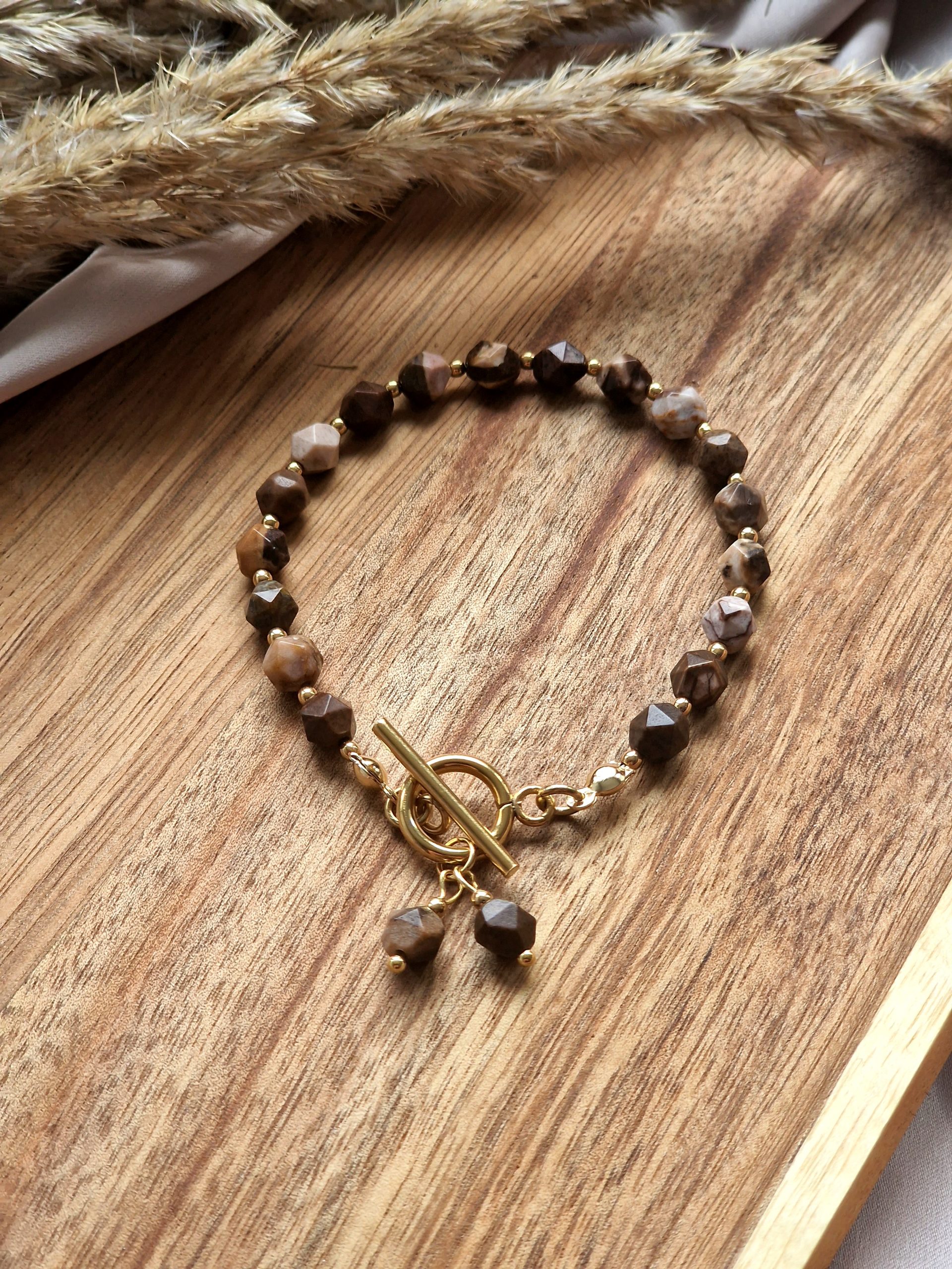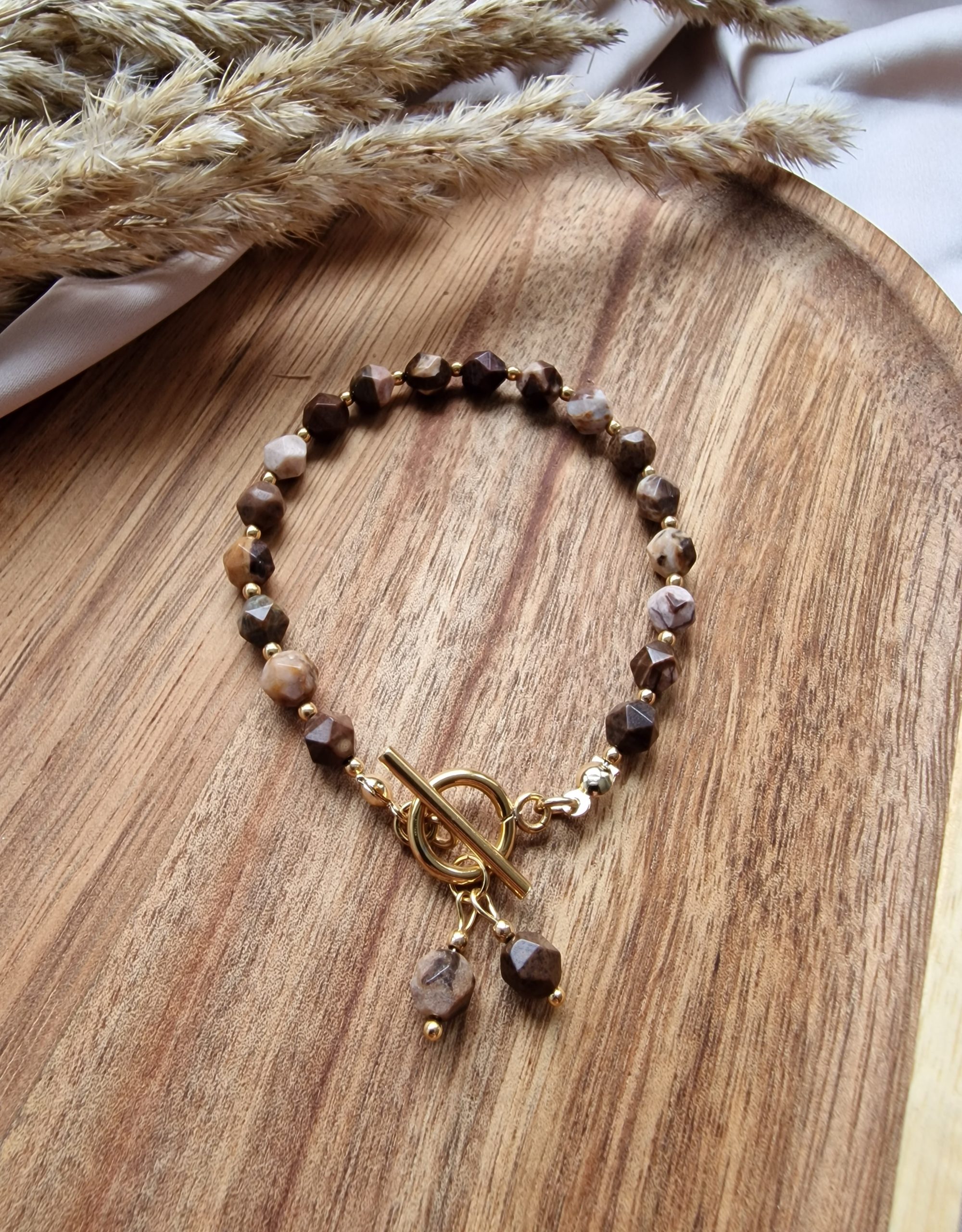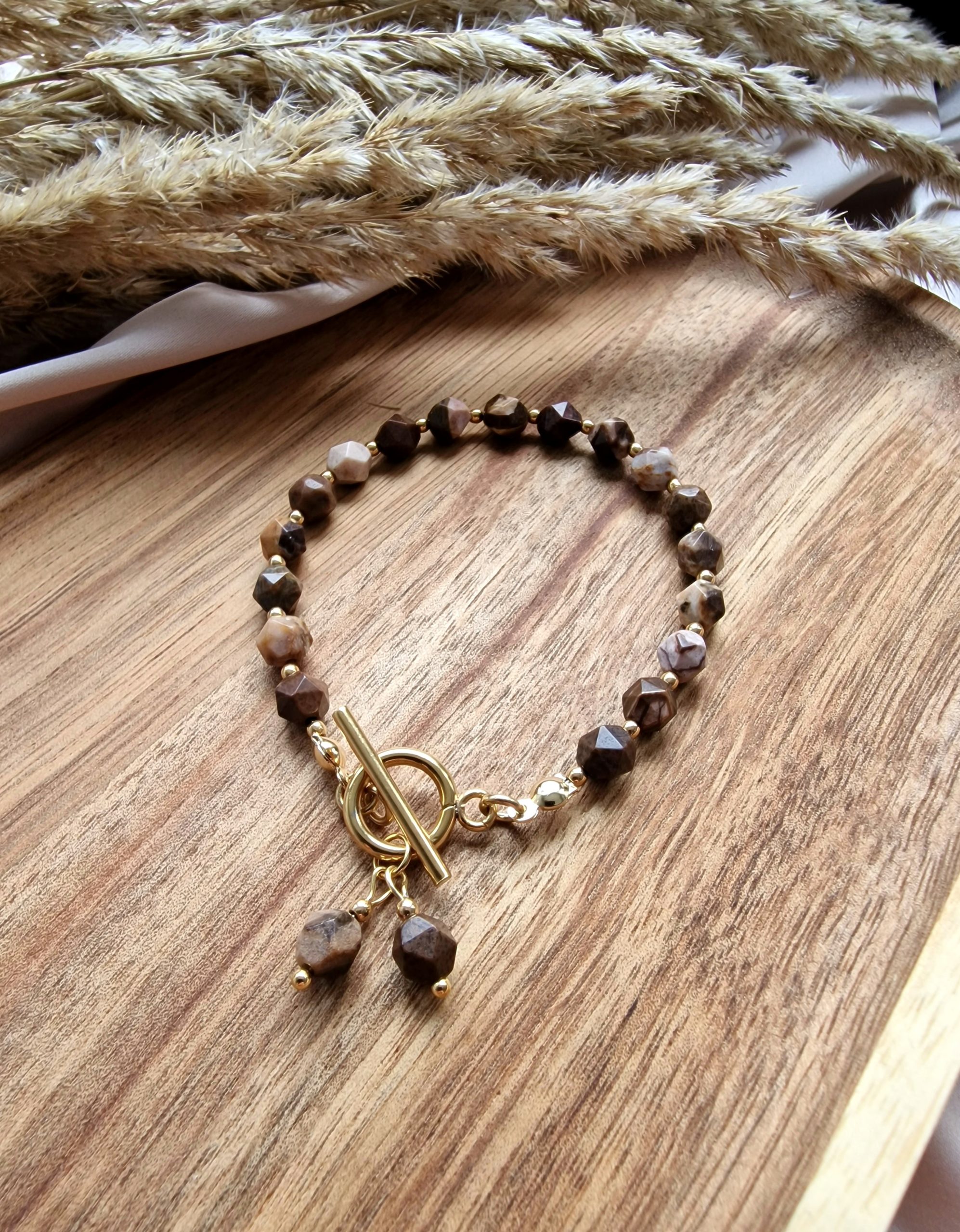 Kamienie użyte do wykonania bransoletki : JASPIS ZEBRA ok 6mm, HEMATYT ok 2mm.