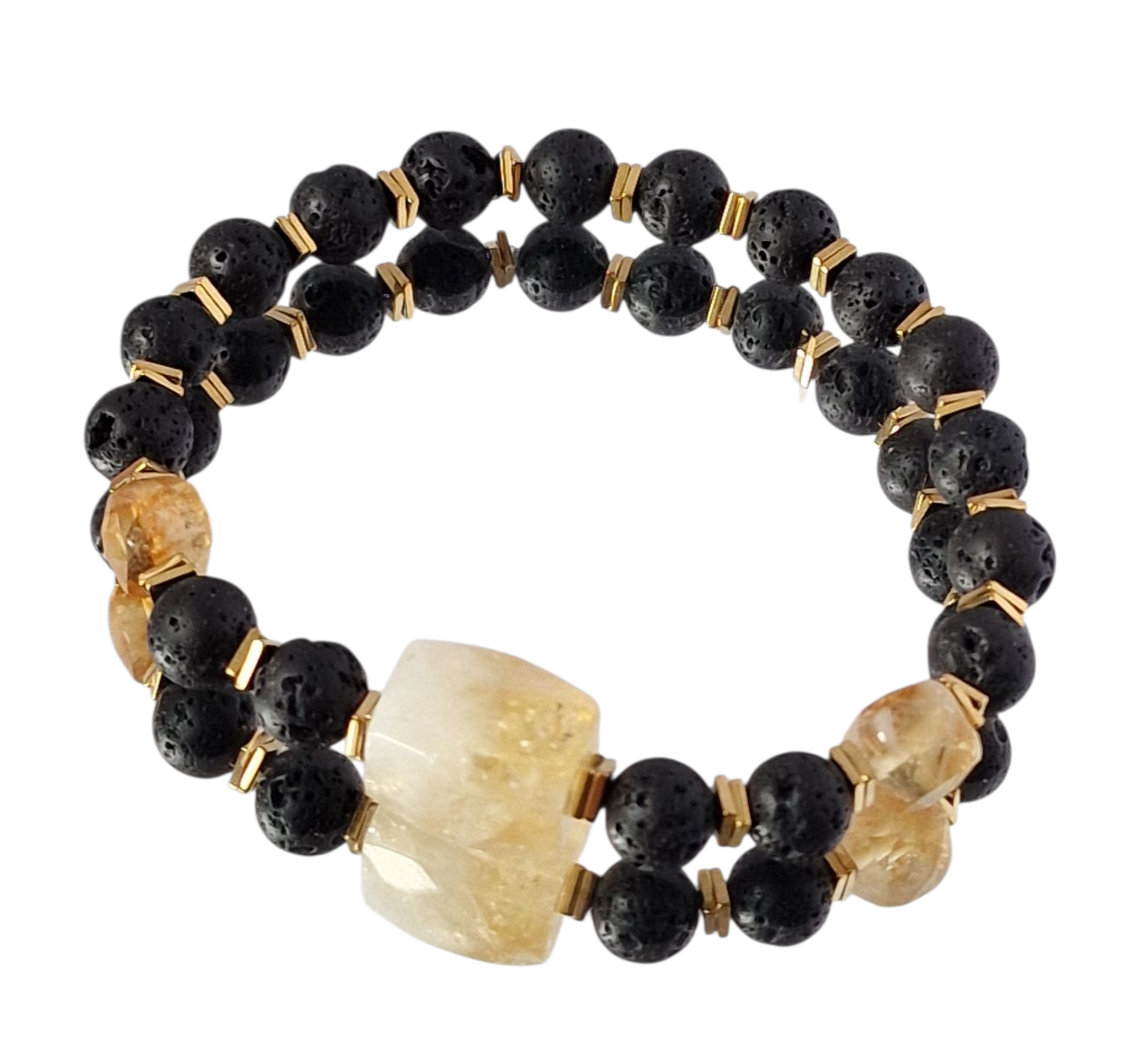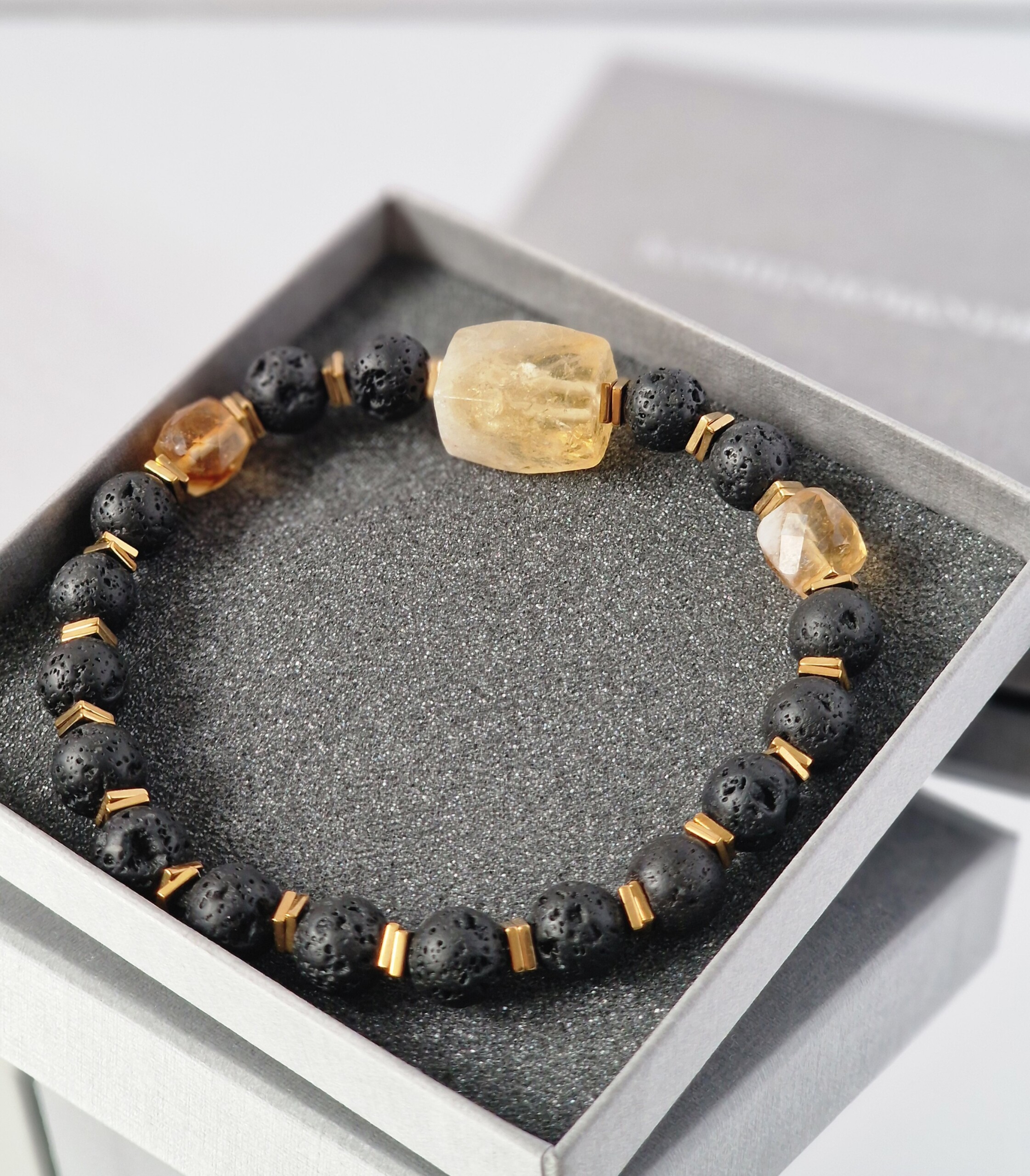 Bransoletka męska Cytryn, Lawa wulkaniczna, Hematyt