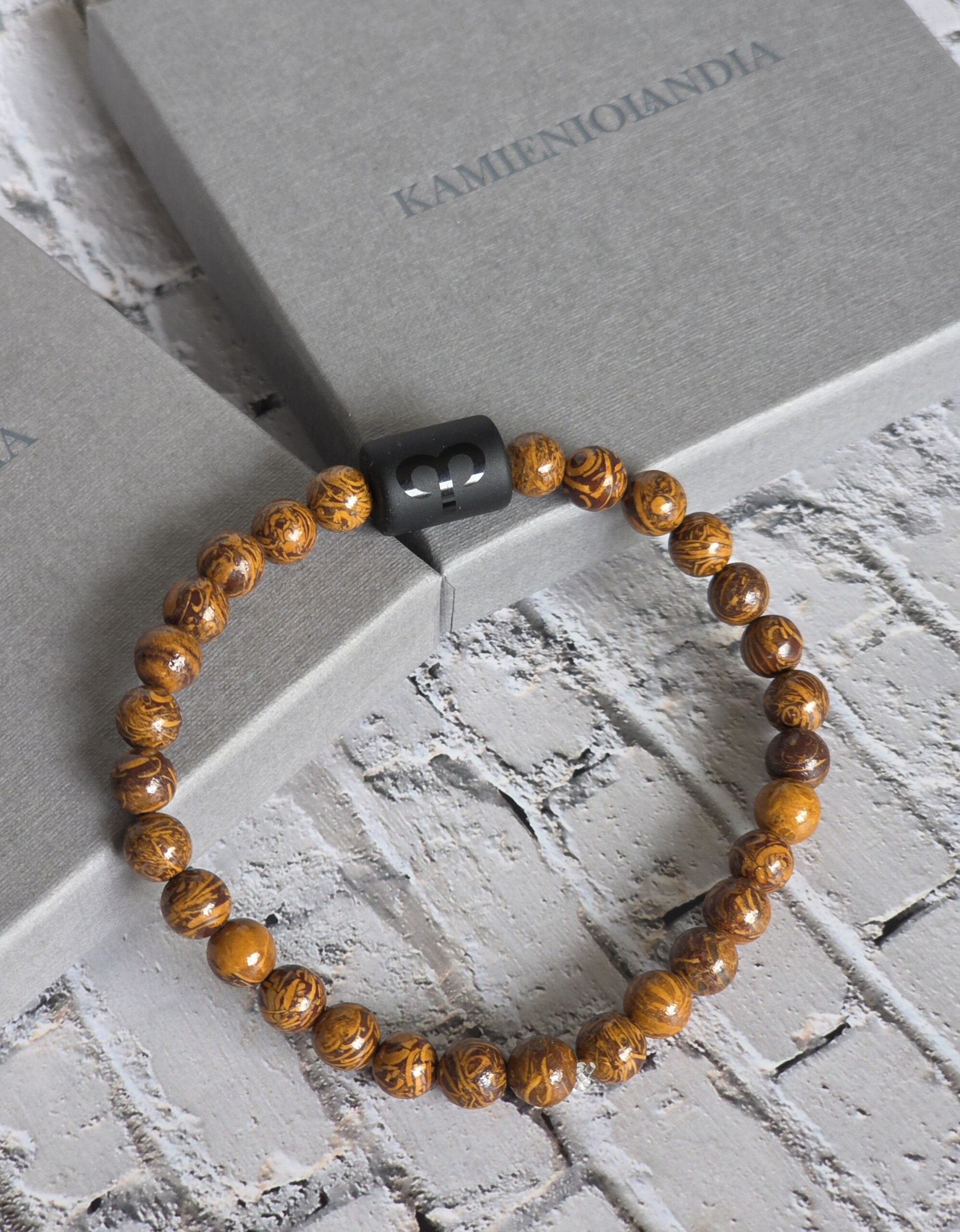 Bransoletka męska Jaspis Kalahari, Onyks ze znakiem zodiaku