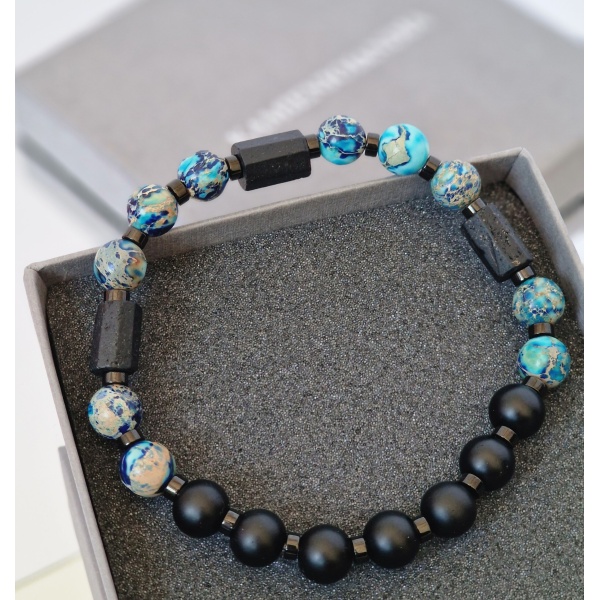 Bransoletka męska Turmalin, Turkusy z osadami morskimi, Lawa wulkaniczna, Hematyt