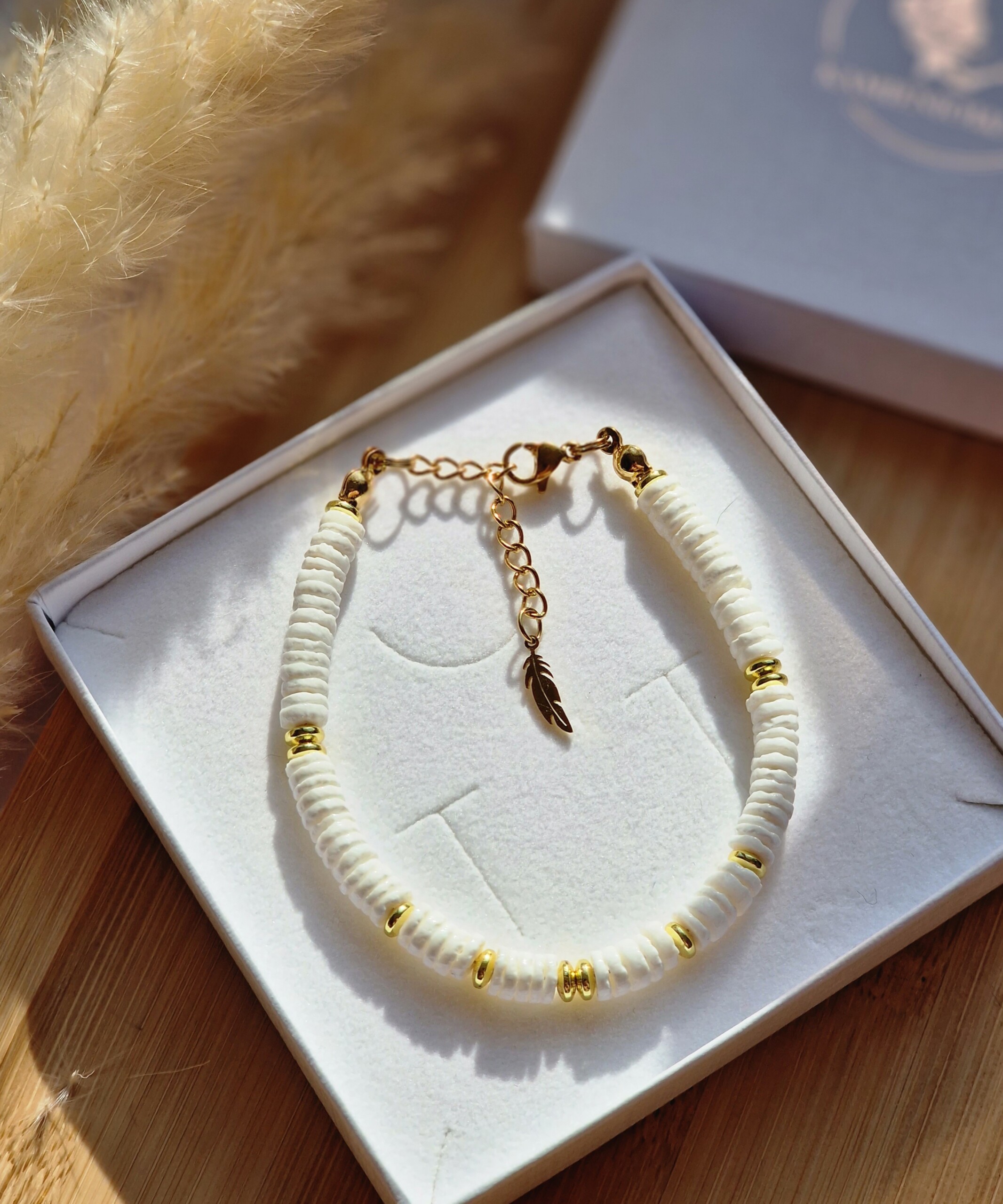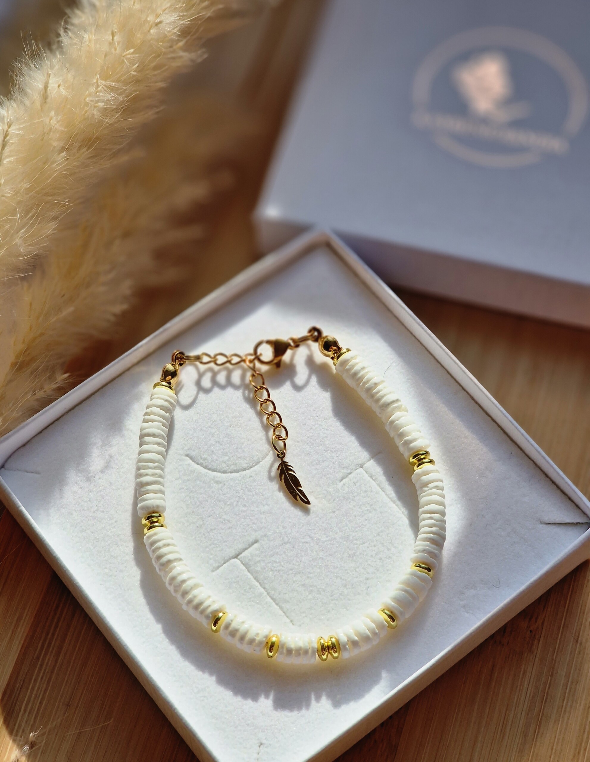 Kamienie użyte do wykonania bransoletki : MUSZELKA ok 2/6mm, HEMATYT ok 1/4mm.