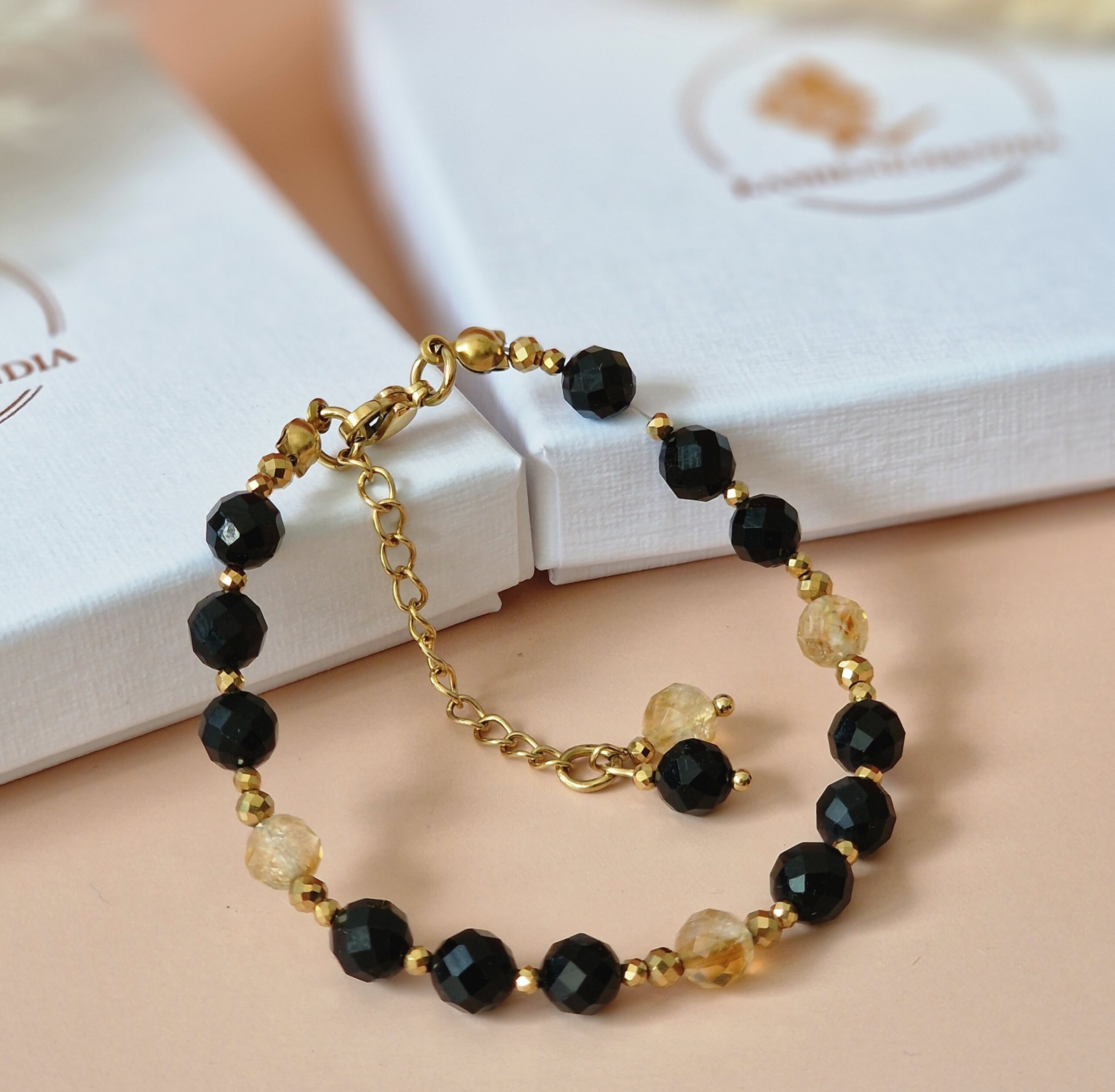 Kamienie użyte do wykonania bransoletki : TURMALIN ok 6mm, CYTRYN ok 6mm, HEMATYT ok 2/3mm.