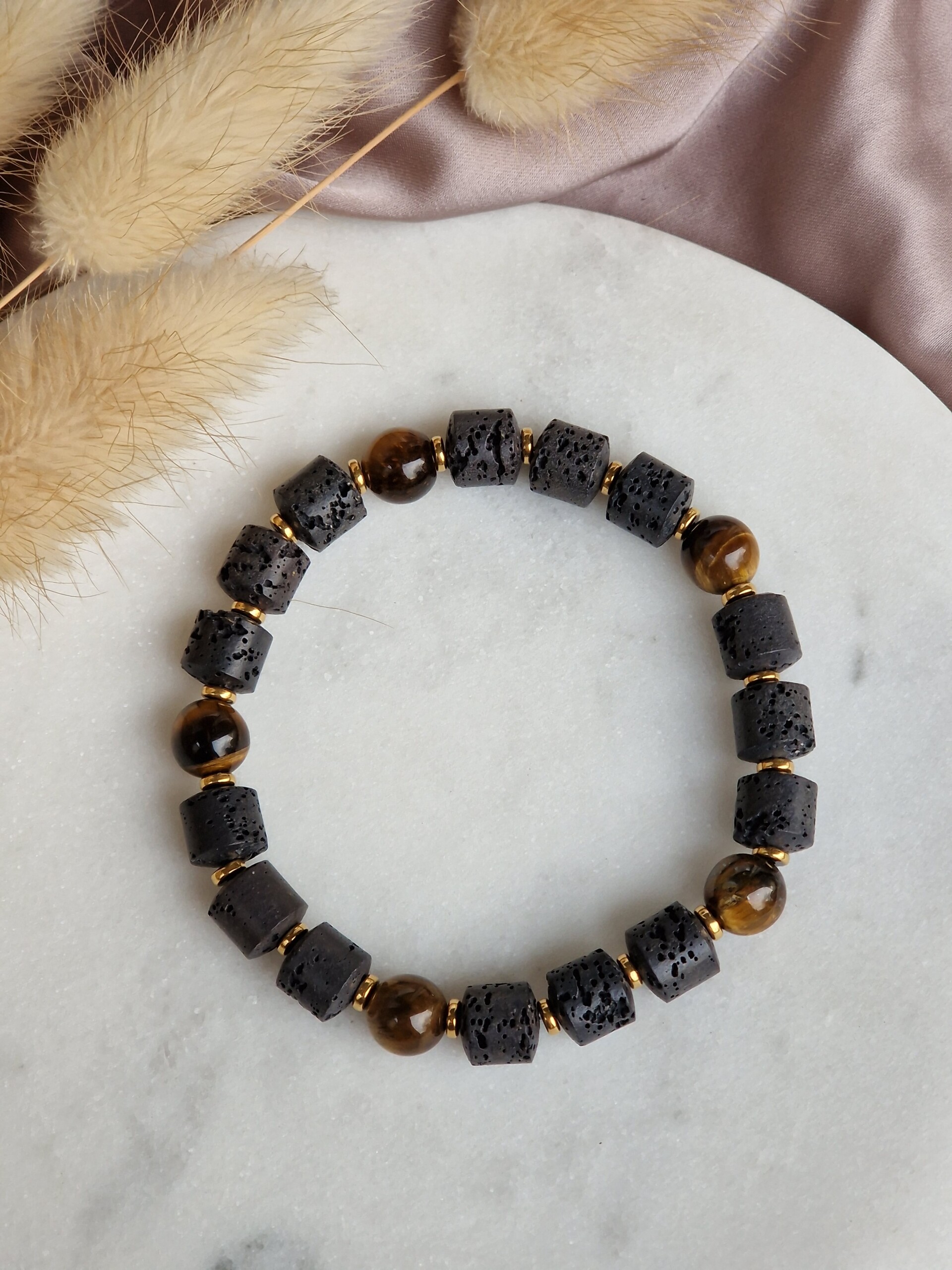 Kamienie użyte do wykonania bransoletki : TYGRYSIE OKO  ok 8mm, LAWA WULKANICZNA ok 7/8mm, HEMATYT ok 1/3mm