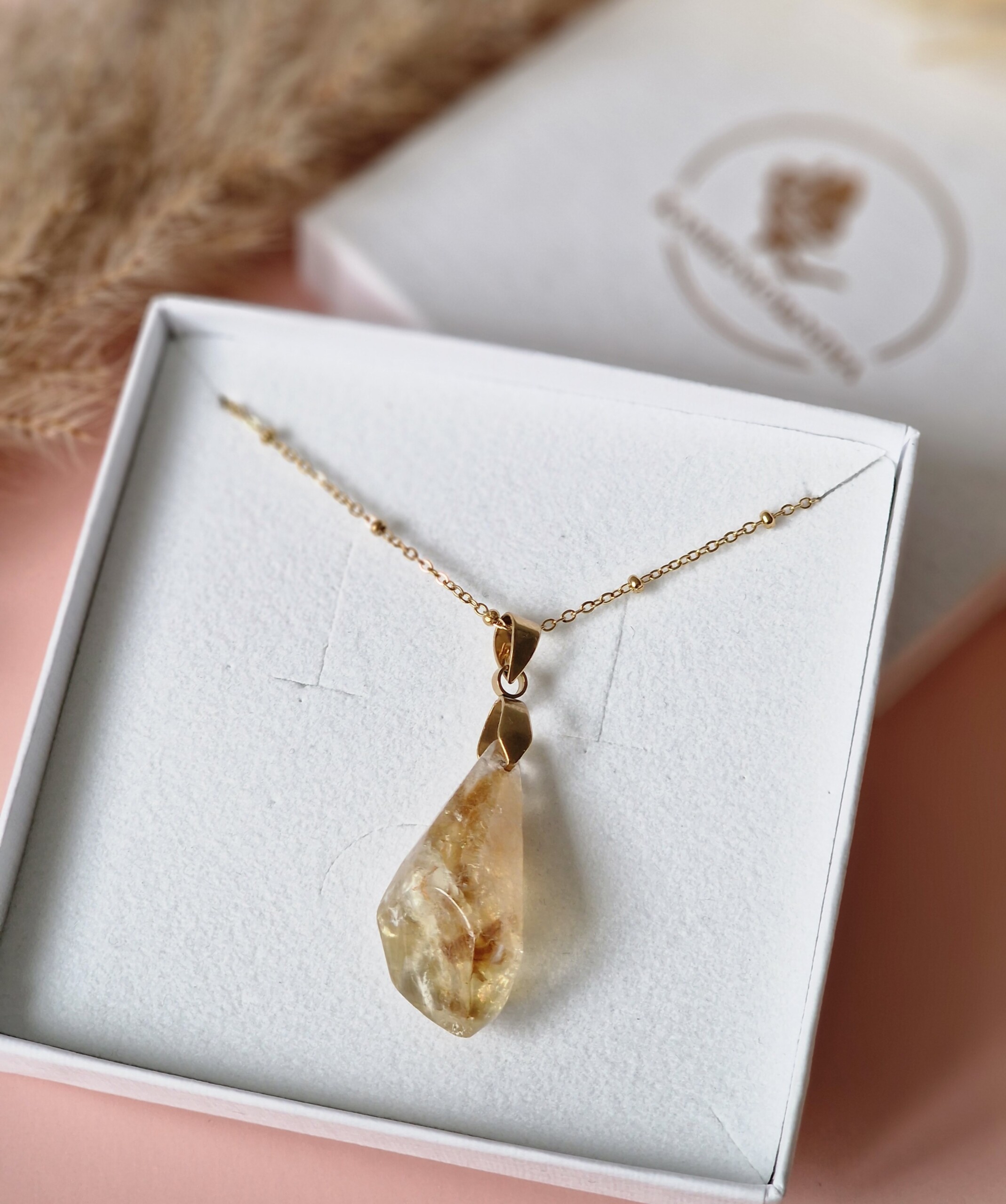 Kamień użyty do wykonania naszyjnika : CYTRYN ok 4 cm długości z krawatką oraz ok 1,5 cm w najszerszym miejscu.