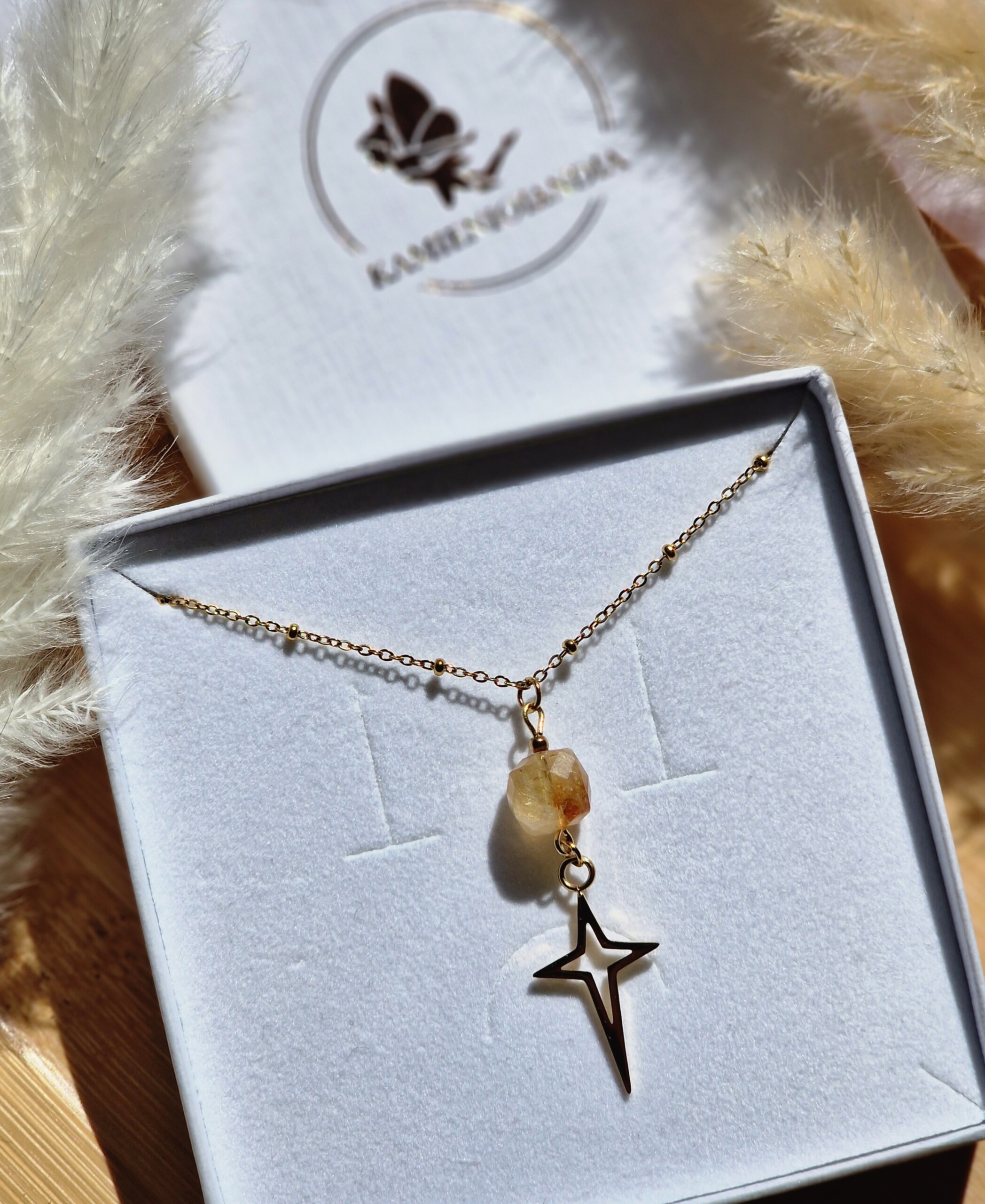 Kamień użyty do wykonania naszyjnika : CYTRYN ok 9/9 mm, HEMATYT ok 2mm