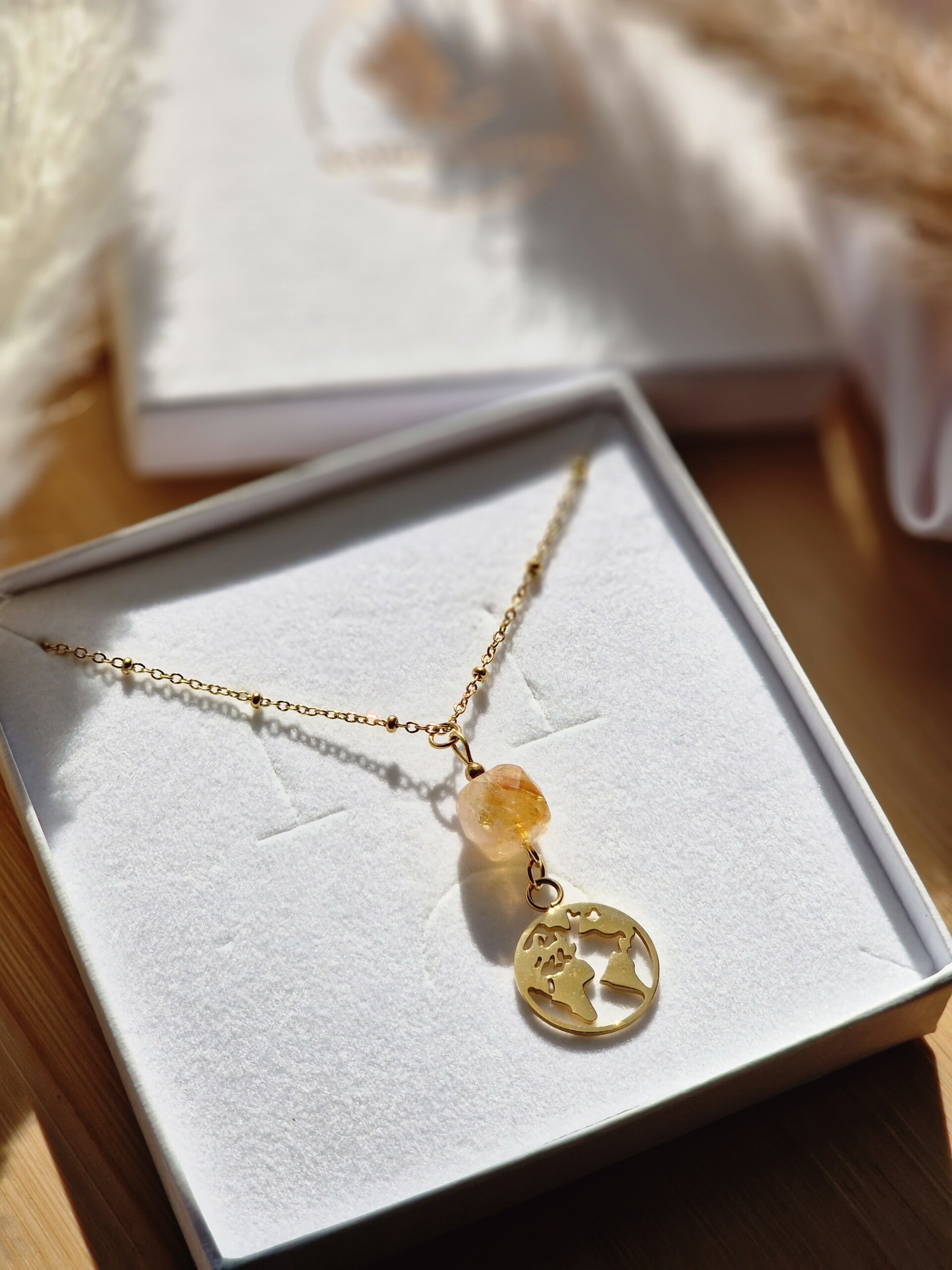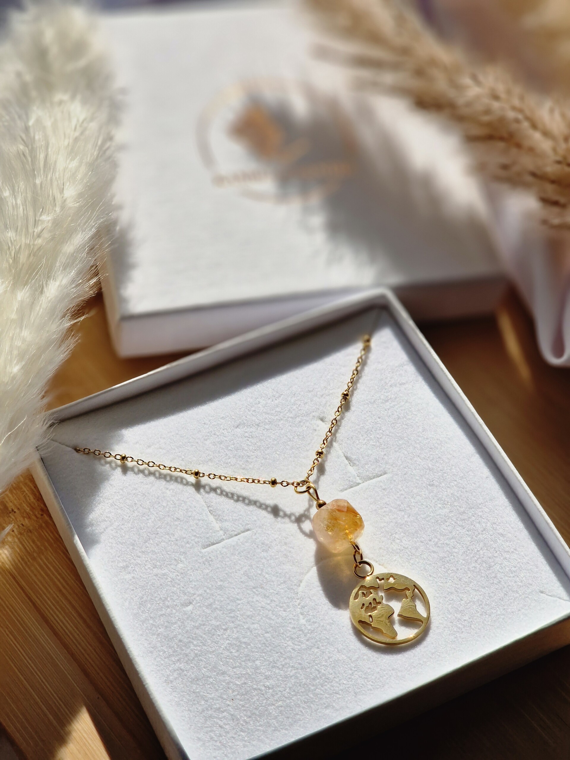 Kamień użyty do wykonania naszyjnika : CYTRYN ok 9/9 mm, HEMATYT ok 2mm