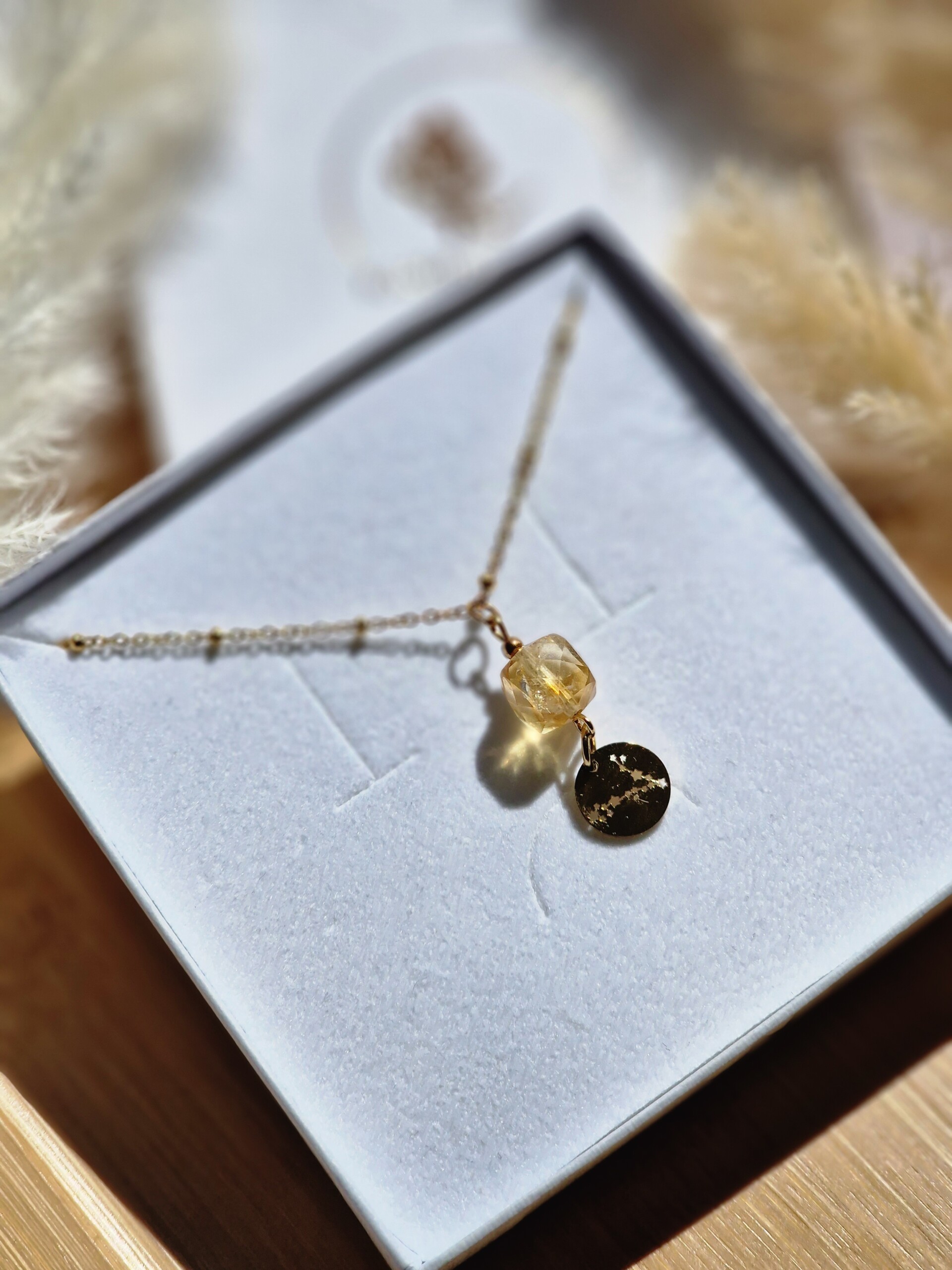 Naszyjnik Cytryn ze znakiem zodiaku konstelacja