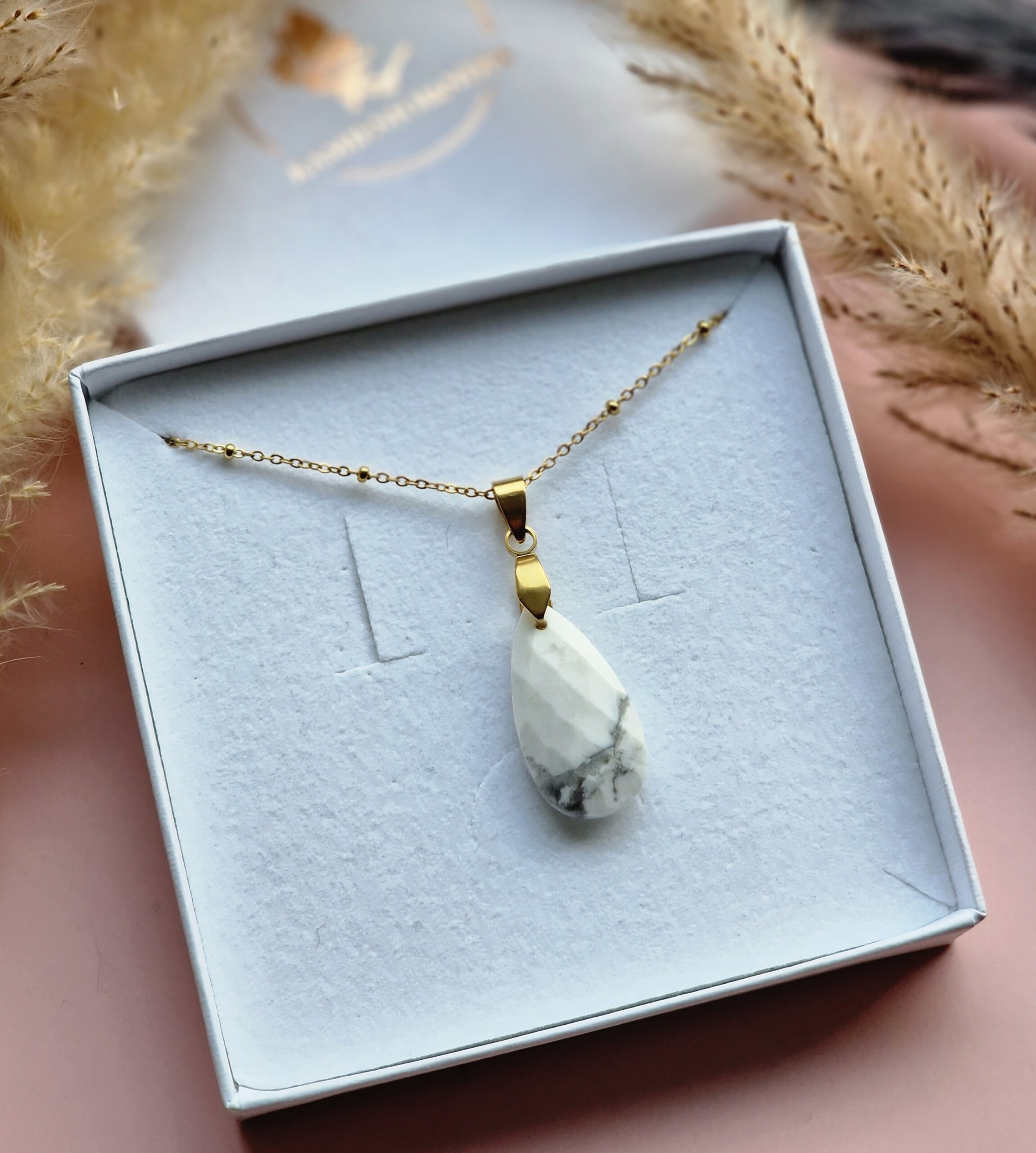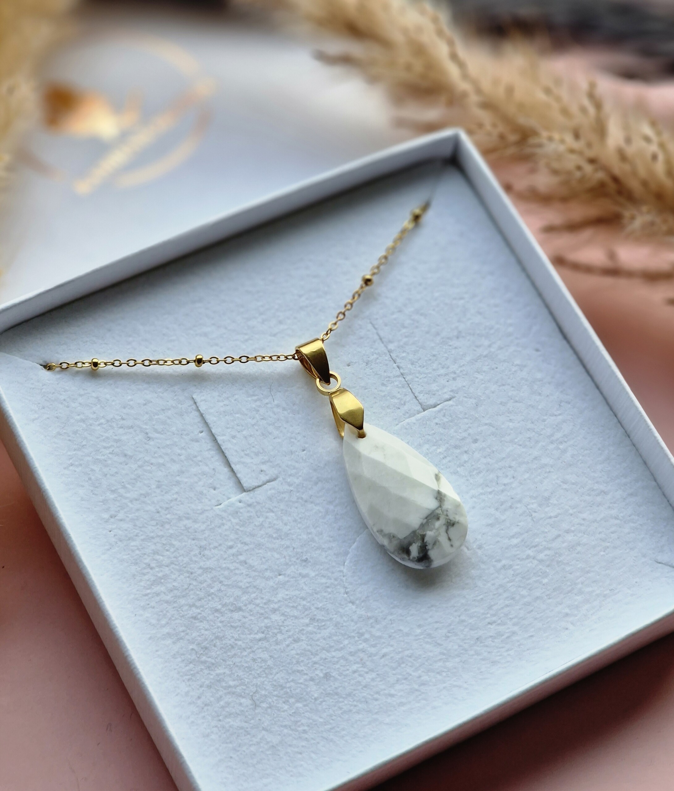 Kamień użyty do wykonania naszyjnika :  HOWLIT  ok 13/25  mm