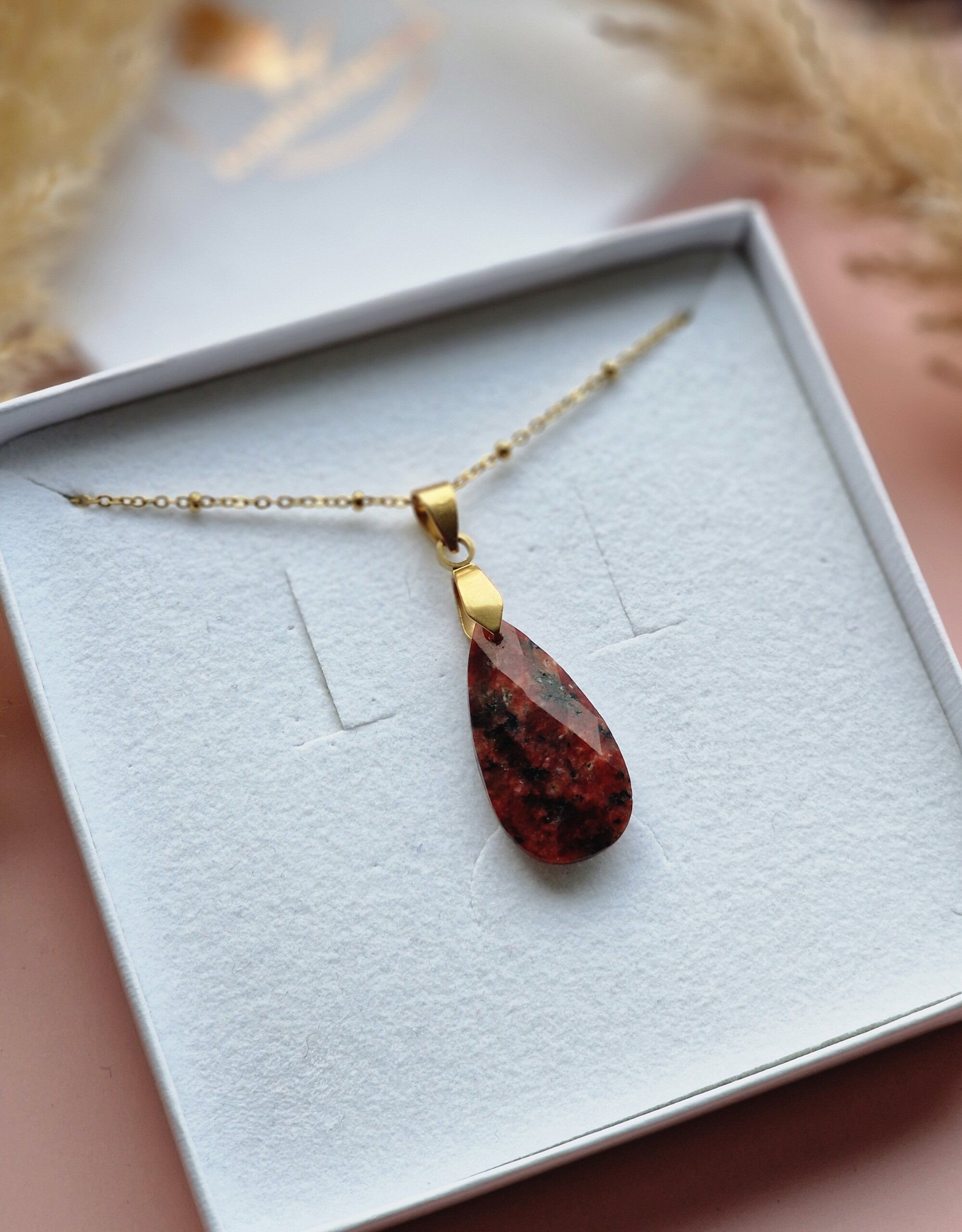 Kamień użyty do wykonania naszyjnika : JASPIS CZERWONY ok 13/25 mm