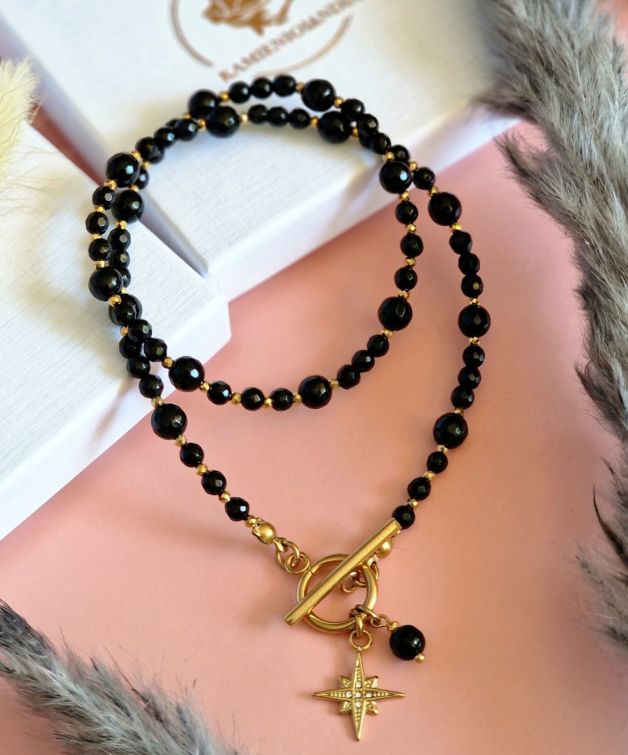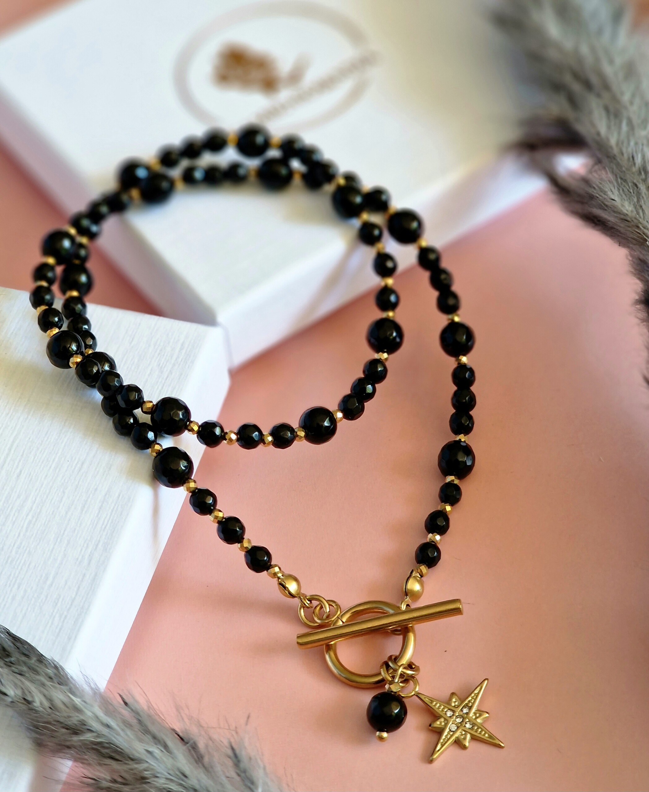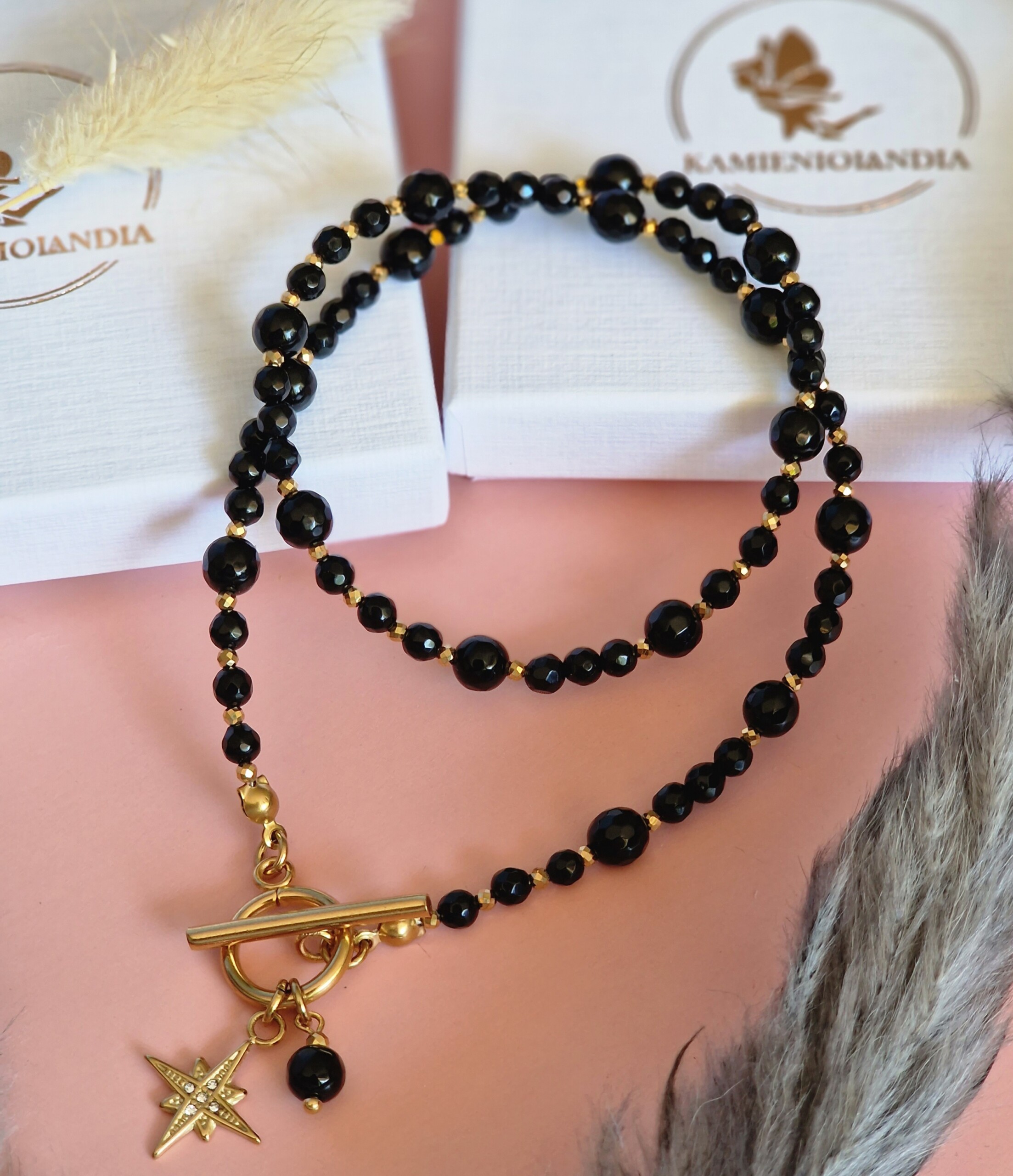 Onyks to elegancki, czarny kamień szlachetny, który od wieków budzi zachwyt swoim tajemniczym wyglądem i głęboką symboliką. Jego intensywny, matowy połysk sprawia, że onyks jest nie tylko atrakcyjnym elementem biżuterii, ale również potężnym narzędziem w litoterapii i ezoteryce. W kulturze antycznej Onyks symbolizował siłę, ochronę oraz zdolność do koncentracji, co czyni go doskonałym wsparciem w pracy nad rozwojem duchowym i emocjonalnym.