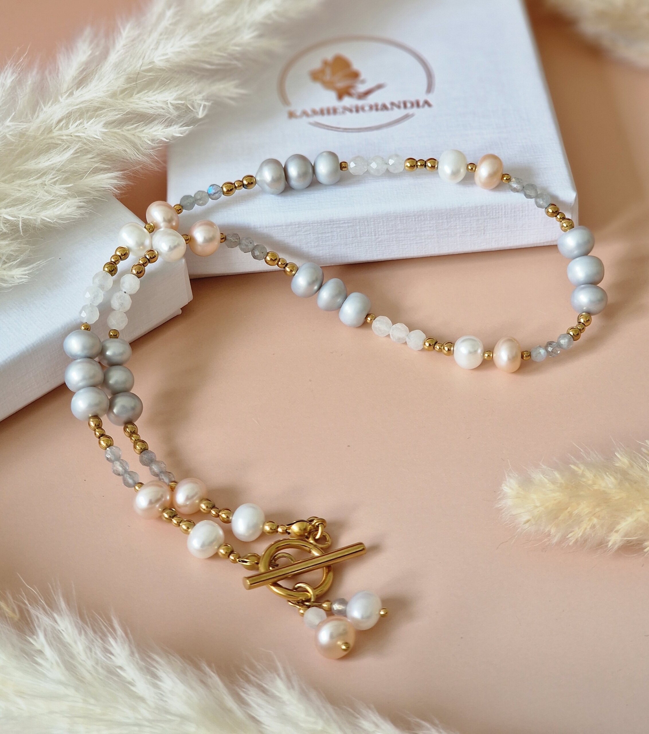 Kamienie użyte do wykonania naszyjnika : PERŁA NATURALNA ok 5-6mm, LABRADORYT ok 3mm, KAMIEŃ KSIĘŻYCOWY ok 4mm HEMATYT ok 2/3 mm.