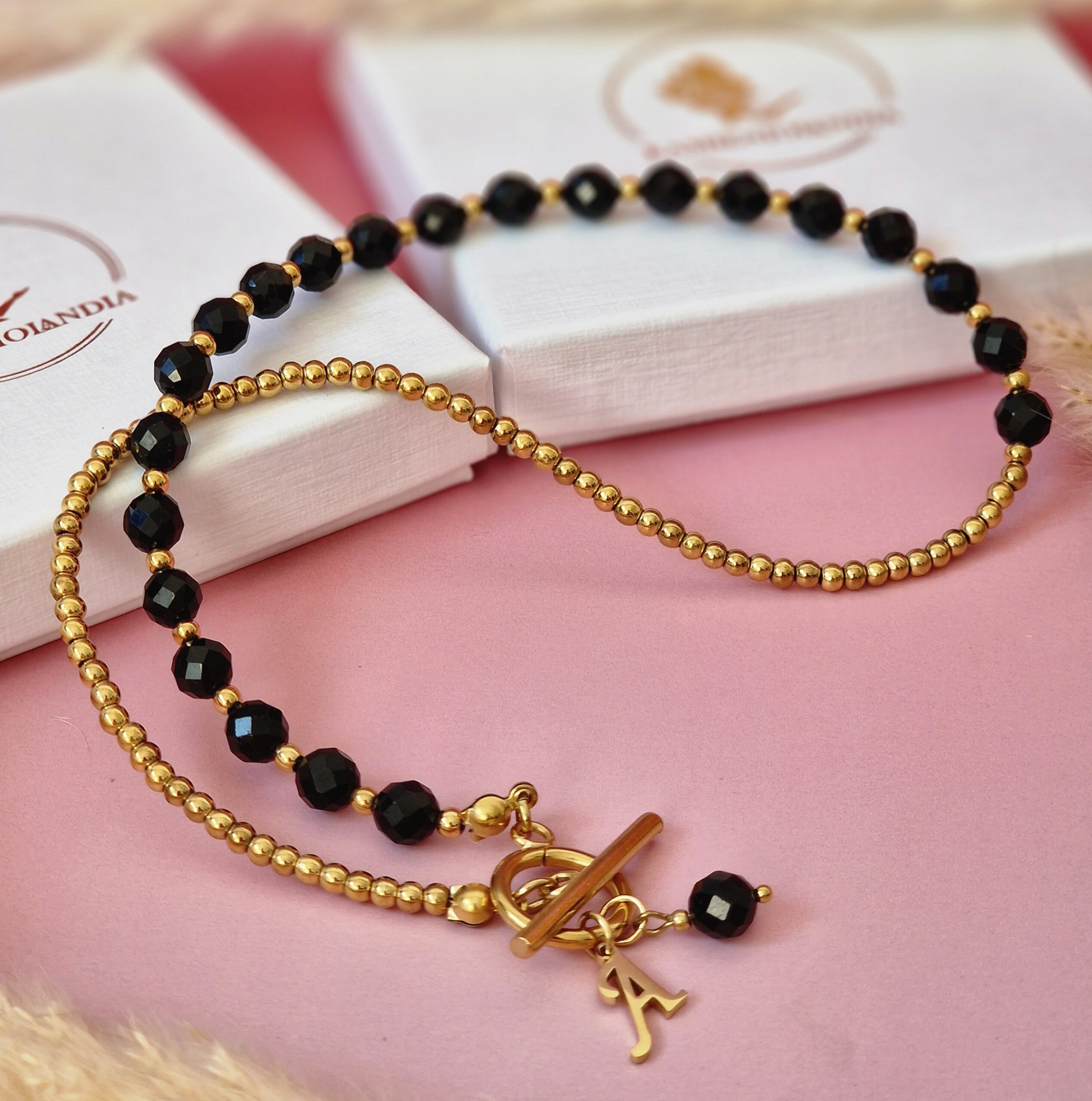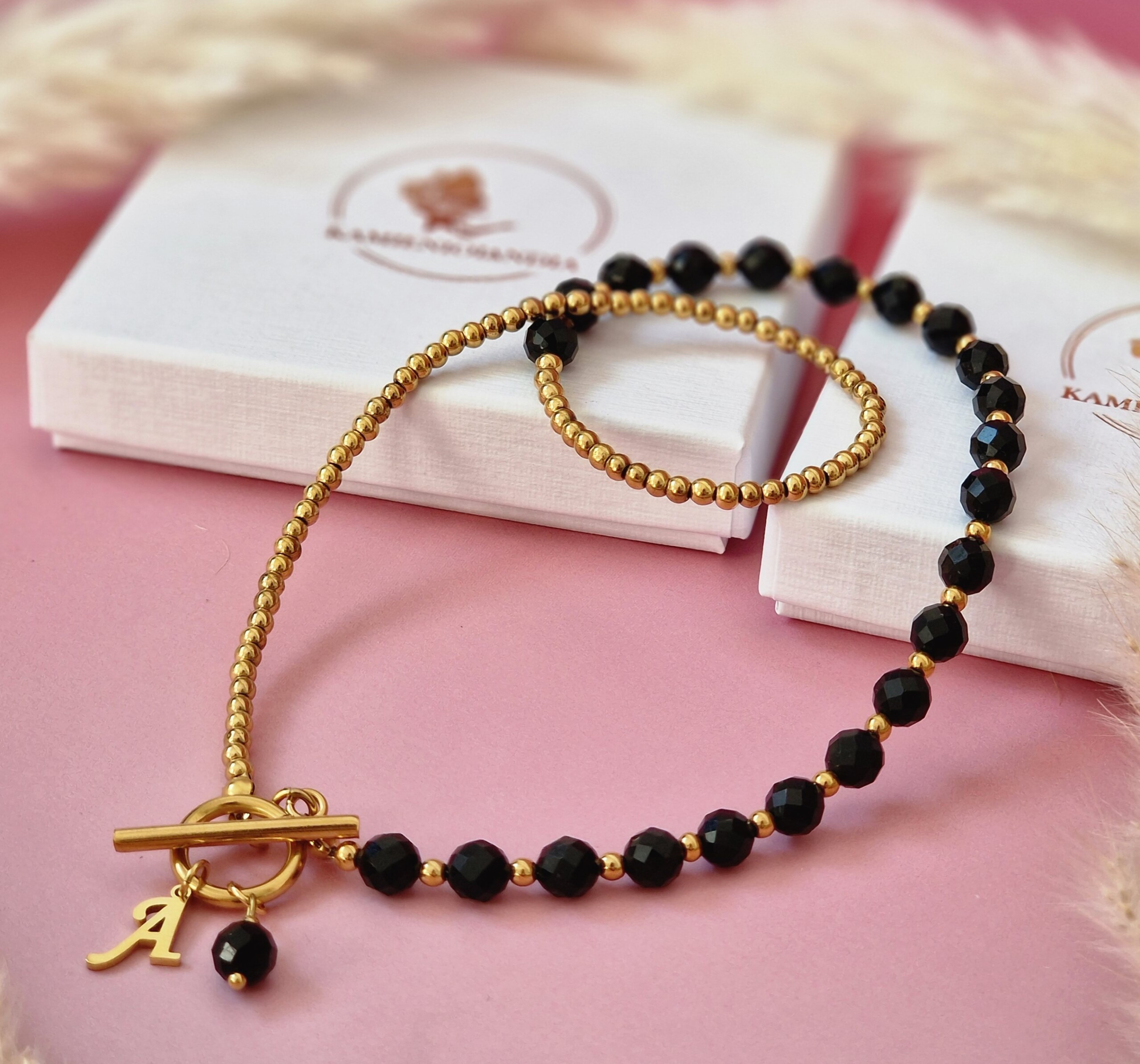 Kamienie użyte do wykonania naszyjnika :  TURMALIN ok 6mm, HEMATYT ok 3mm.