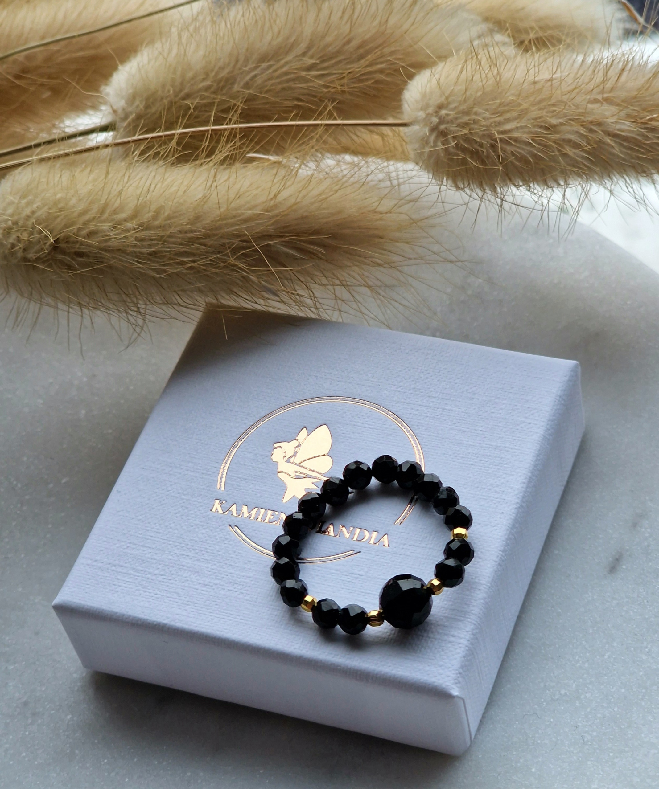 Kamienie użyte do wykonania pierścionka : TURMALIN ok 3mm/ok 6mm oraz KULECZKI GOLD PLATED 18K ok 2mm.