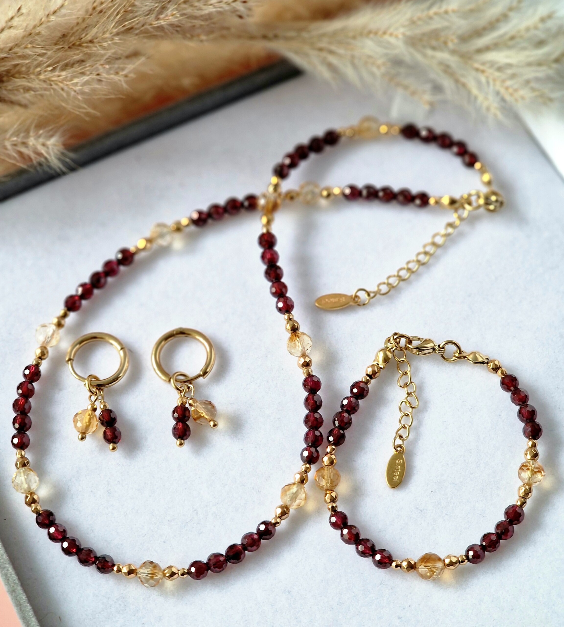 Kamienie użyte do wykonania naszyjnika : CYTRYN  ok 6 mm, GRANAT  ok 6 mm,  HEMATYT ok 2 i  ok 3mm